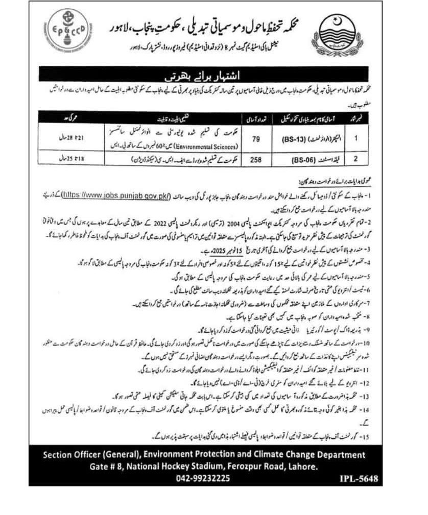 - Educational Qualification: BS degree in Environmental Sciences with Second Division (minimum 60% marks) from a Government-recognized university.