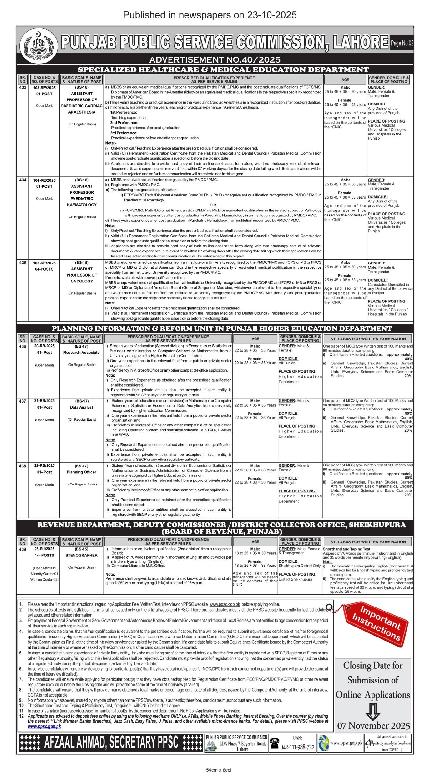 • Application Method: Read the “Important Instructions” on www.ppsc.gop.pk and apply online before the closing date.
